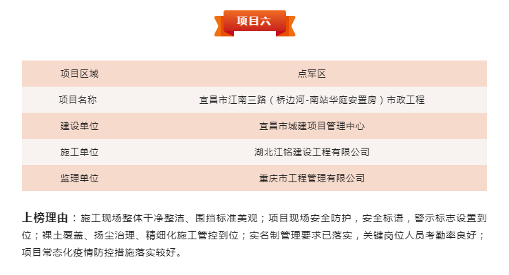 (通訊員:徐文剛、吳鵬翔)為進(jìn)一步貫徹落實(shí)《宜昌市揚(yáng)塵污染防治條例》《宜昌市城區(qū)建設(shè)工程文明施工管理紅黑榜制度(試行)》,強(qiáng)化建筑工地文明施工管理,壓實(shí)建設(shè)單位文明施工主體責(zé)任,鼓勵文明施工先進(jìn)典型,打擊和曝光不文明施工違法行為,結(jié)合建筑工地實(shí)名制管理、關(guān)鍵崗位人員到崗履職相關(guān)要求,宜昌市住建局組織評選了2022年第七期建筑工程安全文明施工管理“紅黑榜”。點(diǎn)盛投資開發(fā)有限公司代建項目江南三路,成為點(diǎn)軍區(qū)唯一獲評紅榜的市政項目。