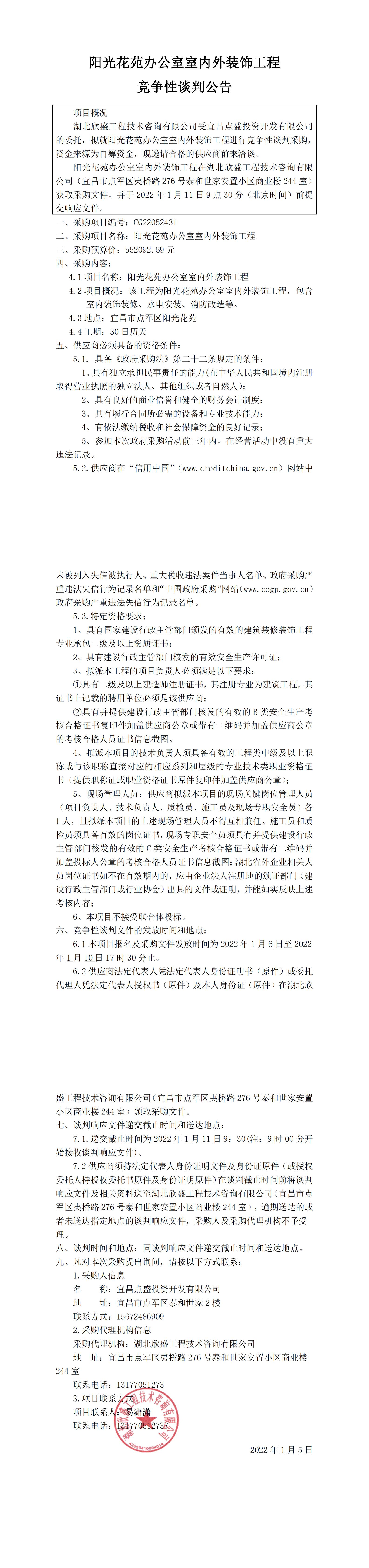 陽光花苑辦公室室內(nèi)外裝飾工程競爭性談判公告