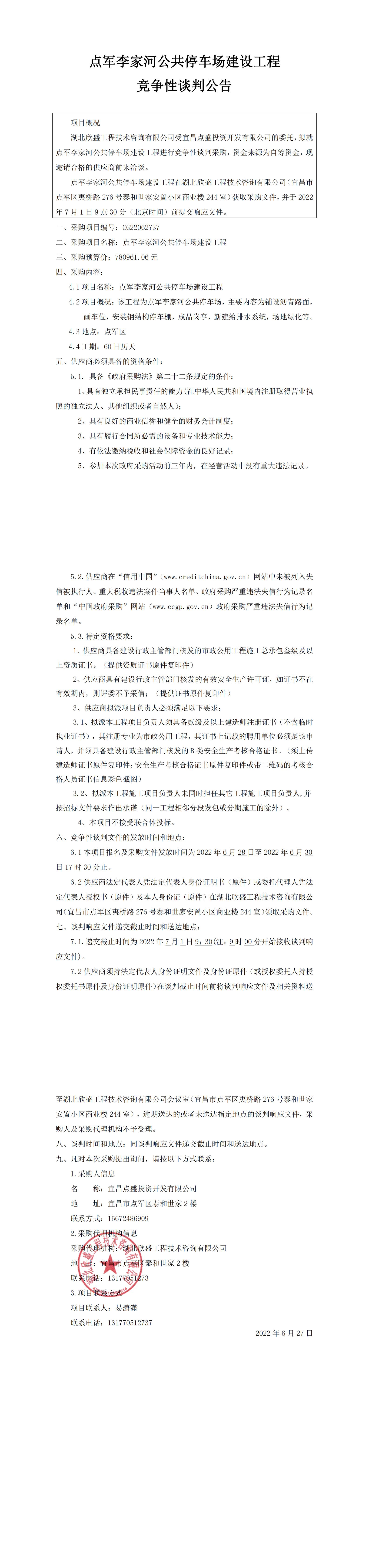 點(diǎn)軍李家河公共停車場建設(shè)工程競爭性談判公告