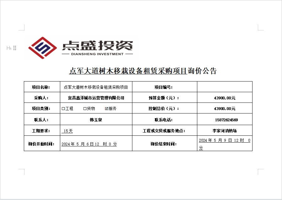 發(fā)布時間:2024/5/6 來源:宜昌點盛投資開發(fā)有限公司 訪問:329