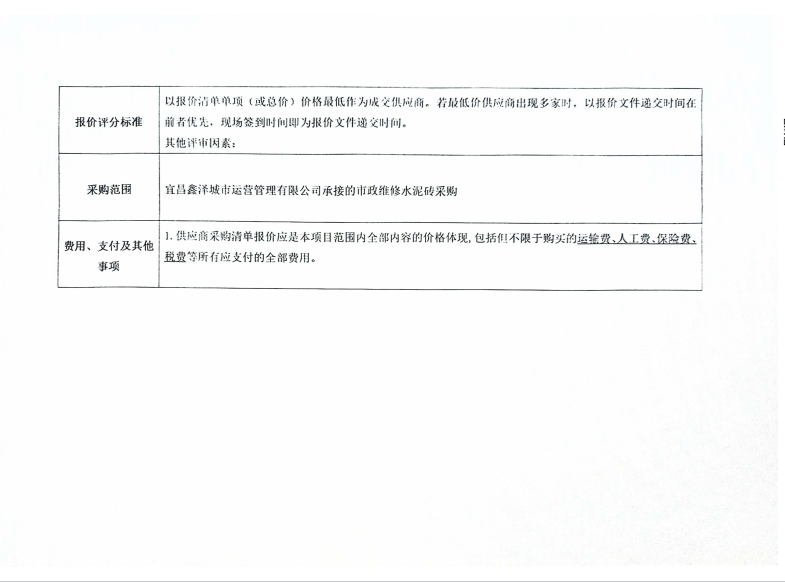 宜昌鑫澤城市運(yùn)營(yíng)管理有限公司市政維修水泥磚采購(gòu)項(xiàng)目詢價(jià)公告