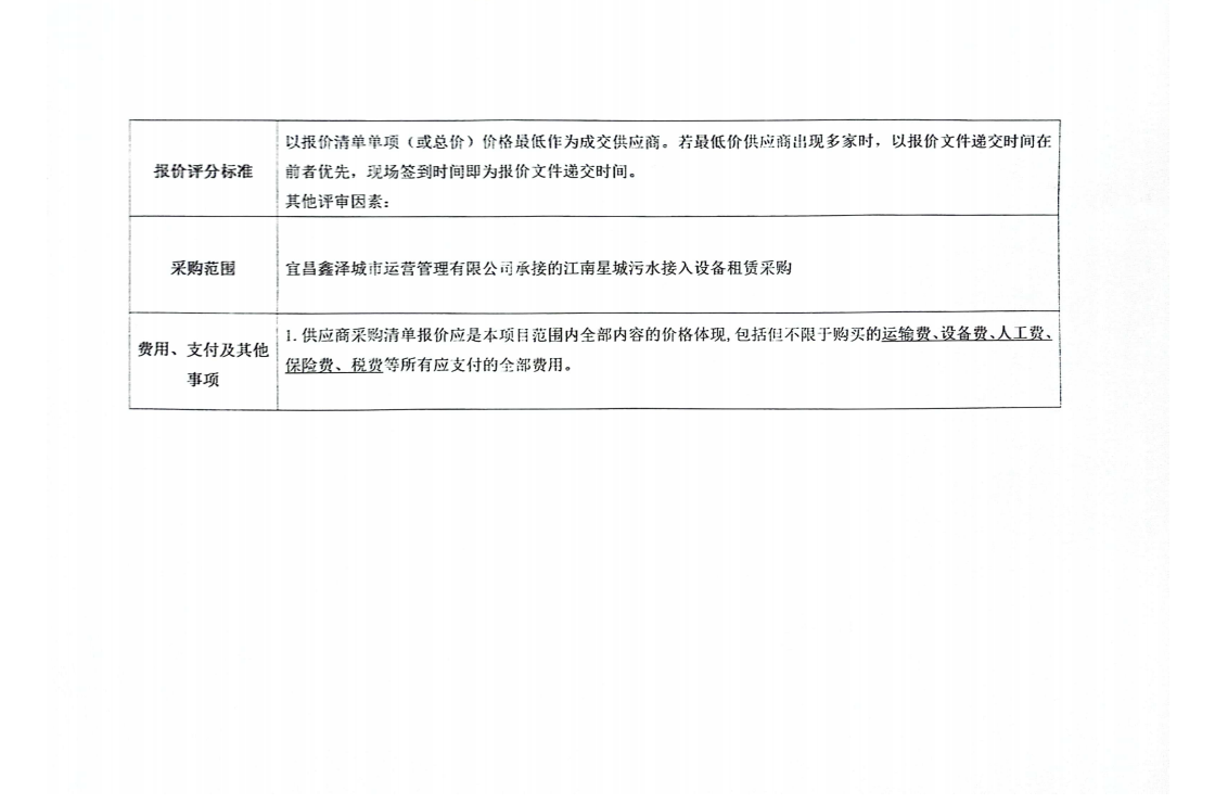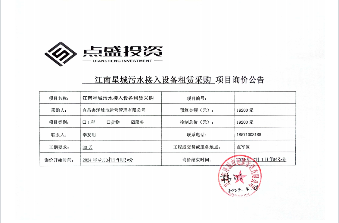 江南星城污水接入設(shè)備租賃采購(gòu)詢價(jià)公告