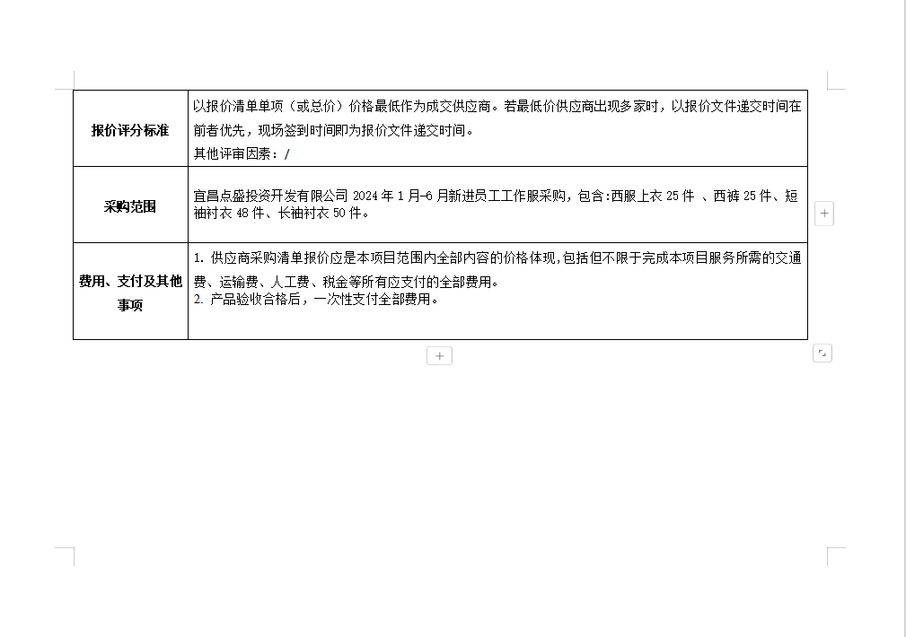 宜昌點(diǎn)盛投資開發(fā)有限公司2024年1月-6月新進(jìn)員工工作服采購(gòu)項(xiàng)目詢價(jià)公告