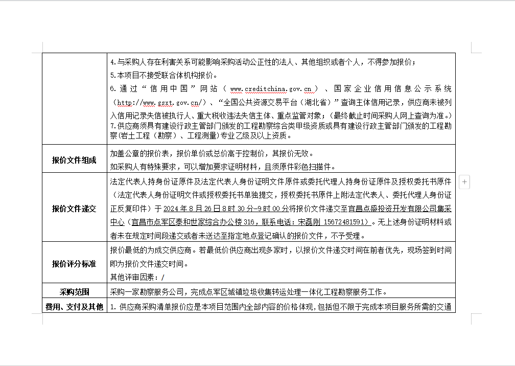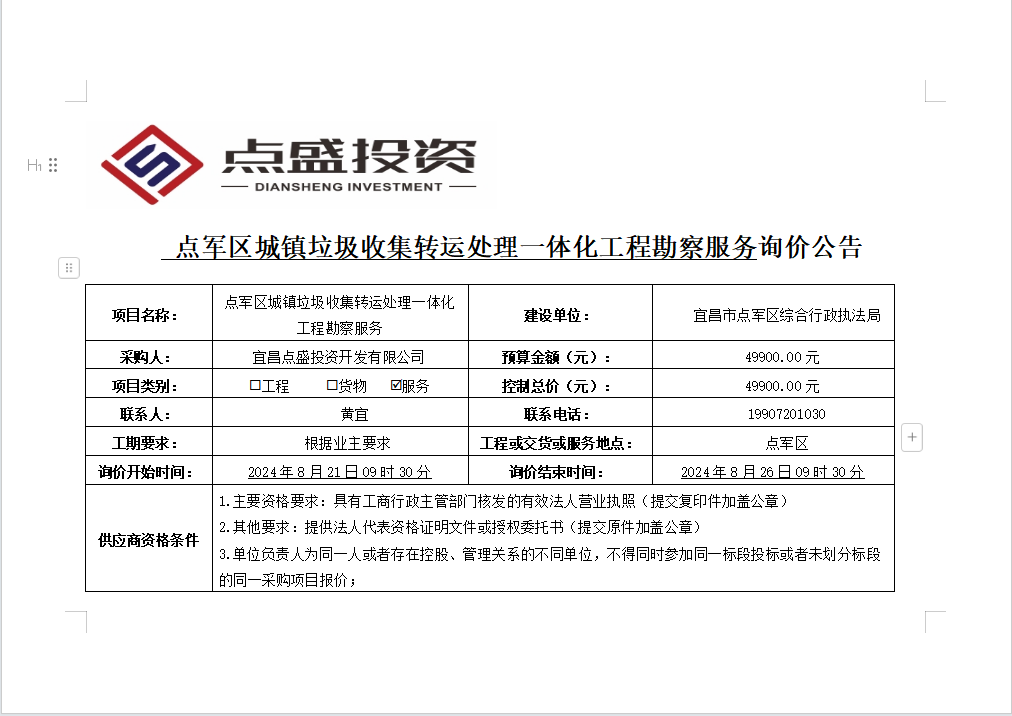 點(diǎn)軍區(qū)城鎮(zhèn)垃圾收集轉(zhuǎn)運(yùn)處理一體化工程勘察服務(wù)詢(xún)價(jià)公告