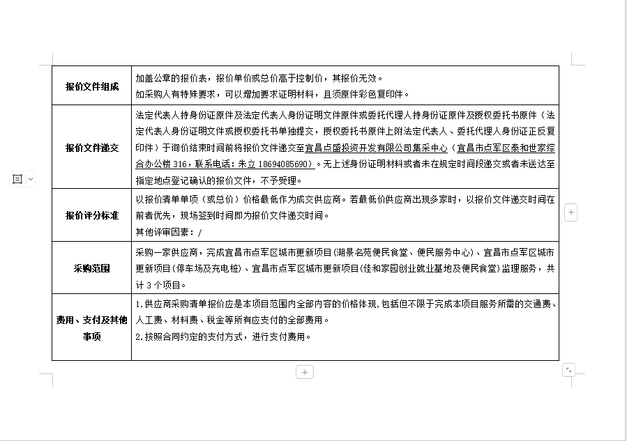 宜昌市點軍區(qū)城市更新項目(湖景名苑便民食堂、便民服務中心)、宜昌市點軍區(qū)城市更新項目(停車場及充電樁)、宜昌市點軍區(qū)城市更新項目(佳和家園創(chuàng)業(yè)就業(yè)基地及便民食堂)監(jiān)理服務詢價公告