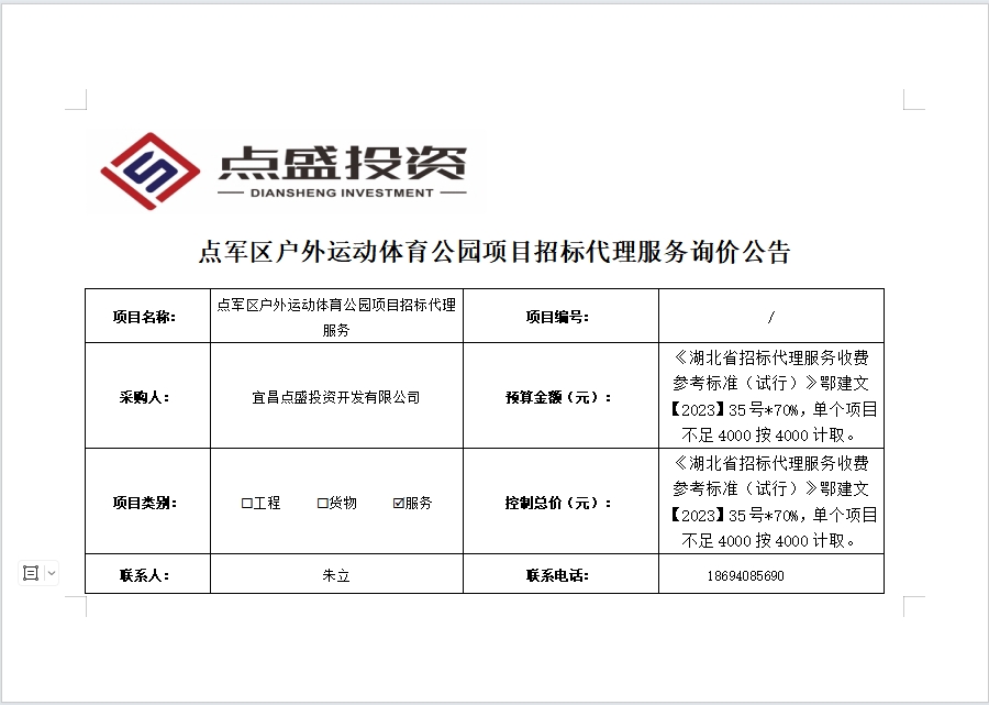 點軍區(qū)戶外運動體育公園項目招標代理服務(wù)詢價公告