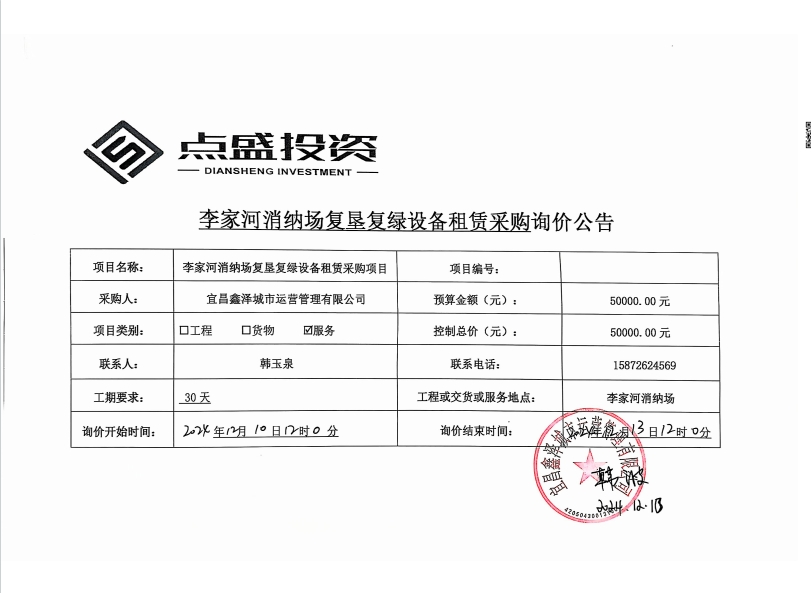 李家河銷鈉場復(fù)墾復(fù)綠設(shè)備租賃采購項(xiàng)目詢價公告
