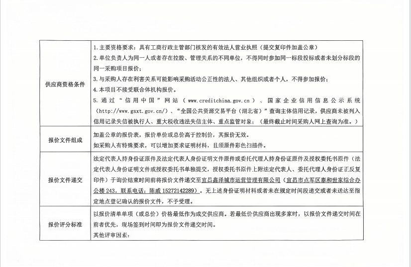 詢價(jià)公告