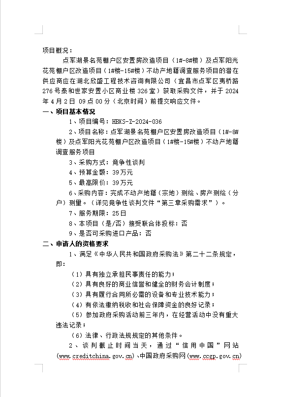點軍湖景名苑棚戶區(qū)安置房改造項目(1#-8#樓)及點軍陽光花苑棚戶區(qū)改造項目(1#樓-15#樓)不動產(chǎn)地籍調(diào)查服務(wù)項目談判公告